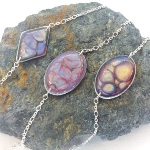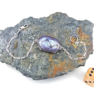 €25.00Bracelet en argent 925 Hexagone peintures émaux violet et blanc -