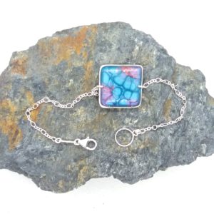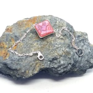€25.00Bracelet délicat 1 pièce, forme carrée et de couleur à dominante rose, montée sur chaine en argent 925 -