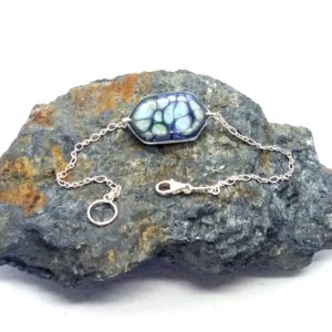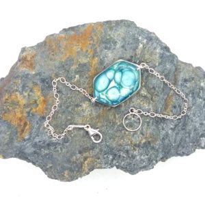 Bracelet argent hexagonal peintures émaux bleu nuit/vert d'eau -