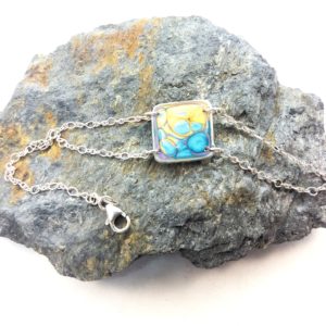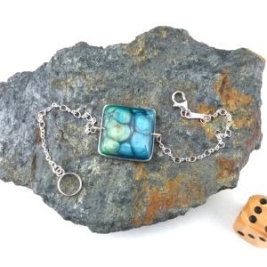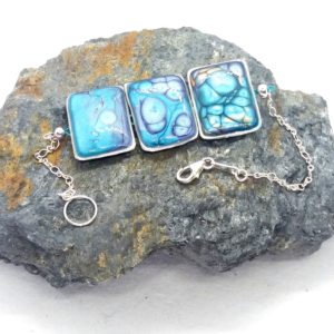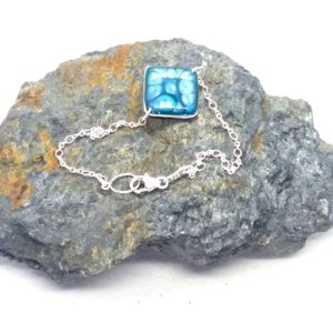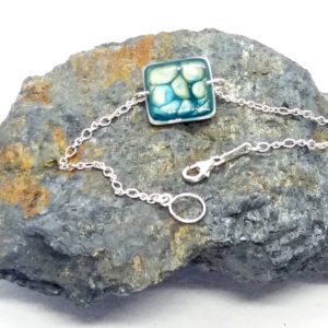 €25.00Bracelet en argent 925 Carré peintures émaux bleu vert -