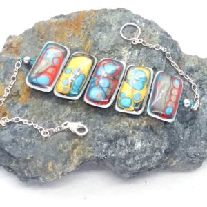 Bracelet argent 5 pièces rouge jaune bleu caraïbes et gris argenté