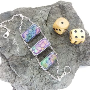 €25.00Bracelet argent Hexagone bleu caraïbes violet et vert clair -