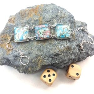Bracelet argent Carré bleu caraïbes et vert d’eau