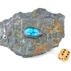 Bracelet argent Hexagone bleu nuit et vert d’eau