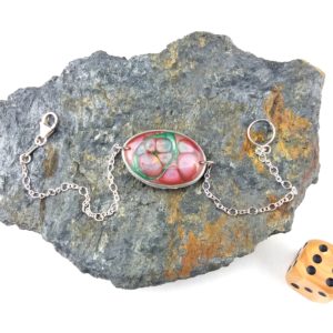 €25.00Bracelet en argent 925 grand Ovale peintures émaux rose vert et bleu -