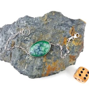 Bracelet argent grand Ovale vert et bleu