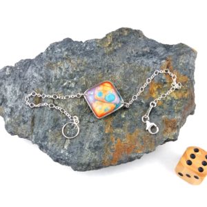 €25.00Bracelet en argent 925 Carré peintures émaux orange bleu et violet -