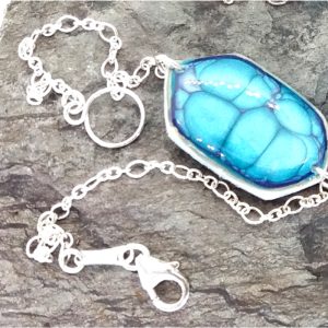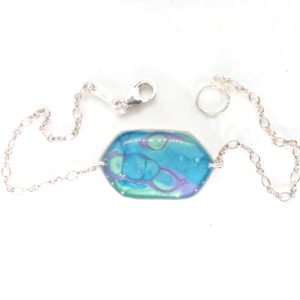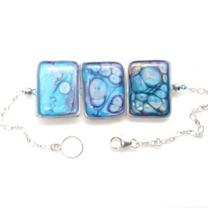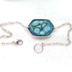 Bracelet argent hexagonal peintures émaux bleu nuit/vert d'eau -