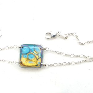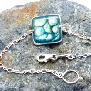 €25.00Bracelet en argent 925 Carré peintures émaux bleu vert -