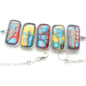 Bracelet argent 5 pièces rouge jaune bleu caraïbes et gris argenté