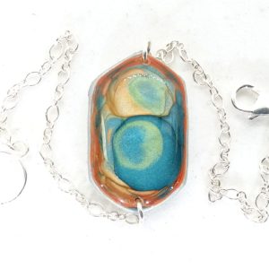 €25.00Bracelet en argent 925 Hexagone peintures émaux bleu et orange -