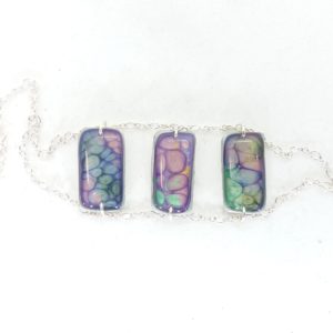 €25.00Bracelet argent Hexagone bleu caraïbes violet et vert clair -