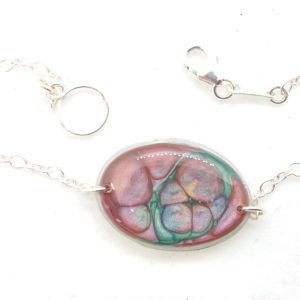 €25.00Bracelet en argent 925 grand Ovale peintures émaux rose vert et bleu -
