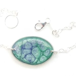 Bracelet argent grand Ovale vert et bleu