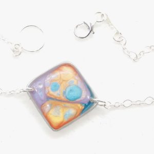 €25.00Bracelet en argent 925 Carré peintures émaux orange bleu et violet -