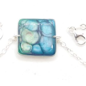 Bracelet argent Carré bleu caraïbes et vert d’eau