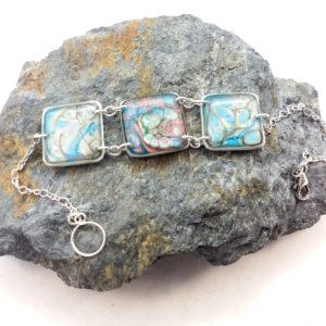 €35.00Bracelet argent 3 pièces carrées séparées blanc bleu et rose -