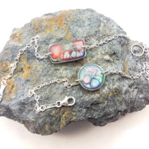 Bracelet en argent petit Rond peintures émaux bleu vert et rose