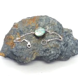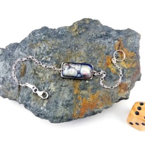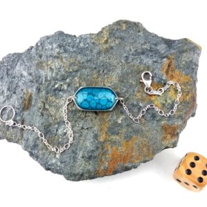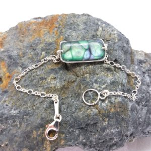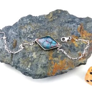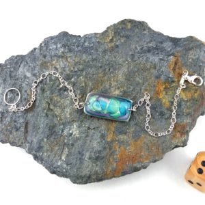 Bracelet argent Rectangle gris argenté vert d'eau et bleu