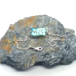 Bracelet argent Rectangle gris argenté vert d’eau et bleu caraïbes
