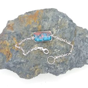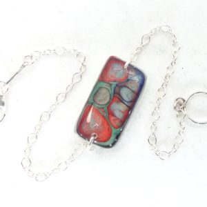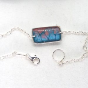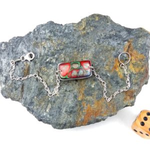 Bracelet en argent 925 petit Rectangle peintures émaux rouge bleu vert gris métal