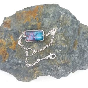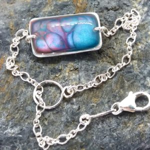 Bracelet en argent 925 petit Rectangle peintures émaux bleu vert rose et violet