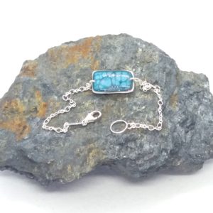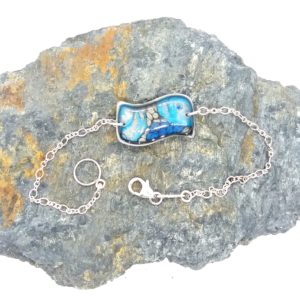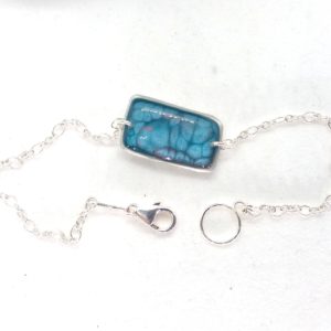 Bracelet en argent 925 petit Rectangle peinture émaux bleu