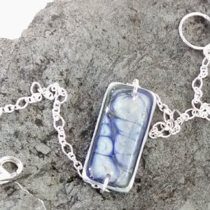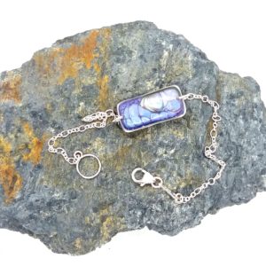 bracelet argent 925. Rectangle peinture émaux bleu/violet