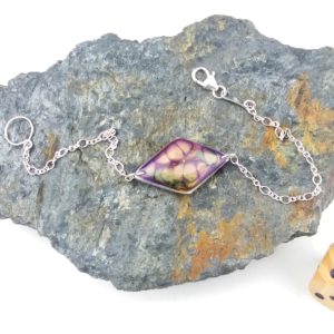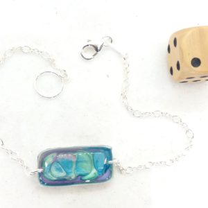 Bracelet argent petit Rectangle bleu vert rose et violet