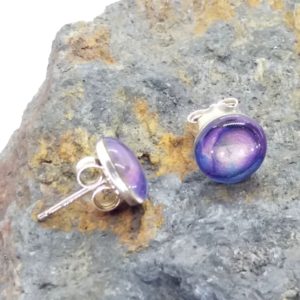 Puces en argent 925 Rond peintures émaux violet et bleu