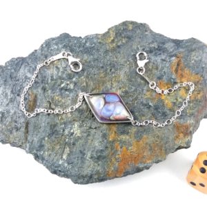 Bracelet en argent 925 petit Losange peintures émaux blanc bleu et rose