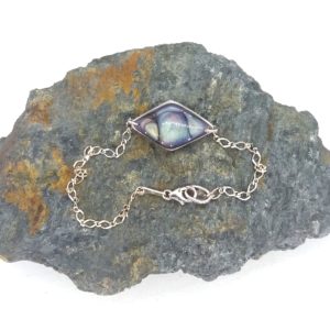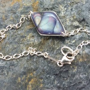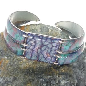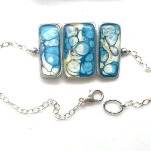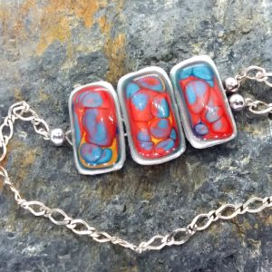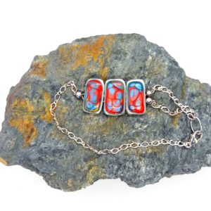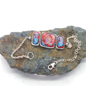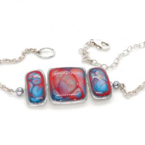 Bracelet 3 pièces rouge et bleu, inspiration émaux avec une chaine et un fermoir en argent 925. Taille du bracelet ajustable de 14cm à 17 cm.