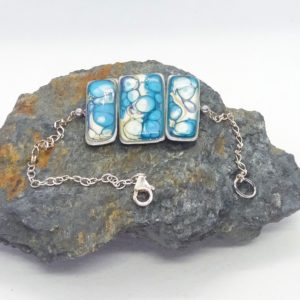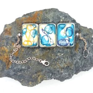 Bracelet argent 3 pièces, inspiration émaux bleu jaune et blanc.