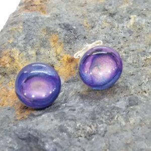 Puces en argent 925 Rond peintures émaux bleu et violet