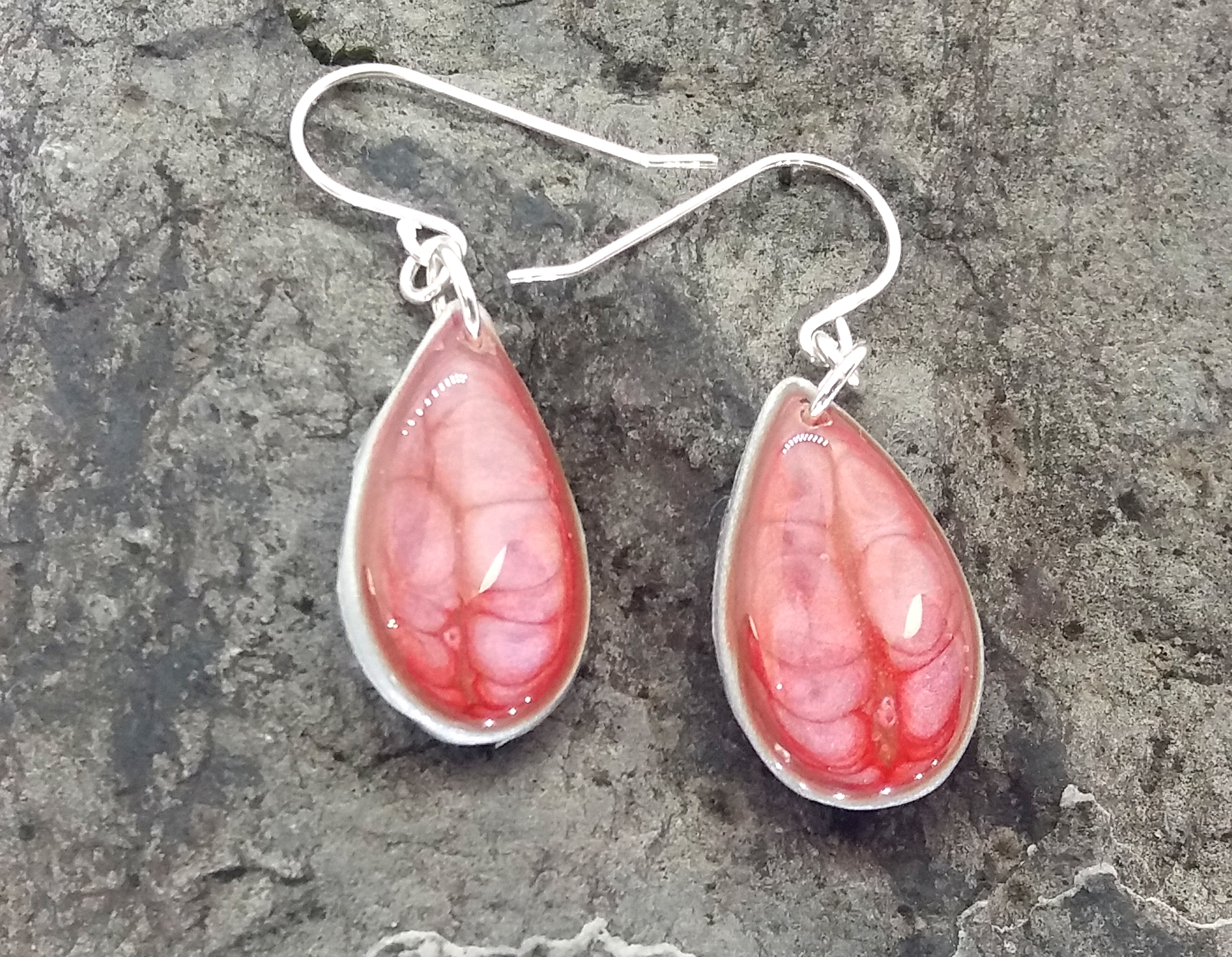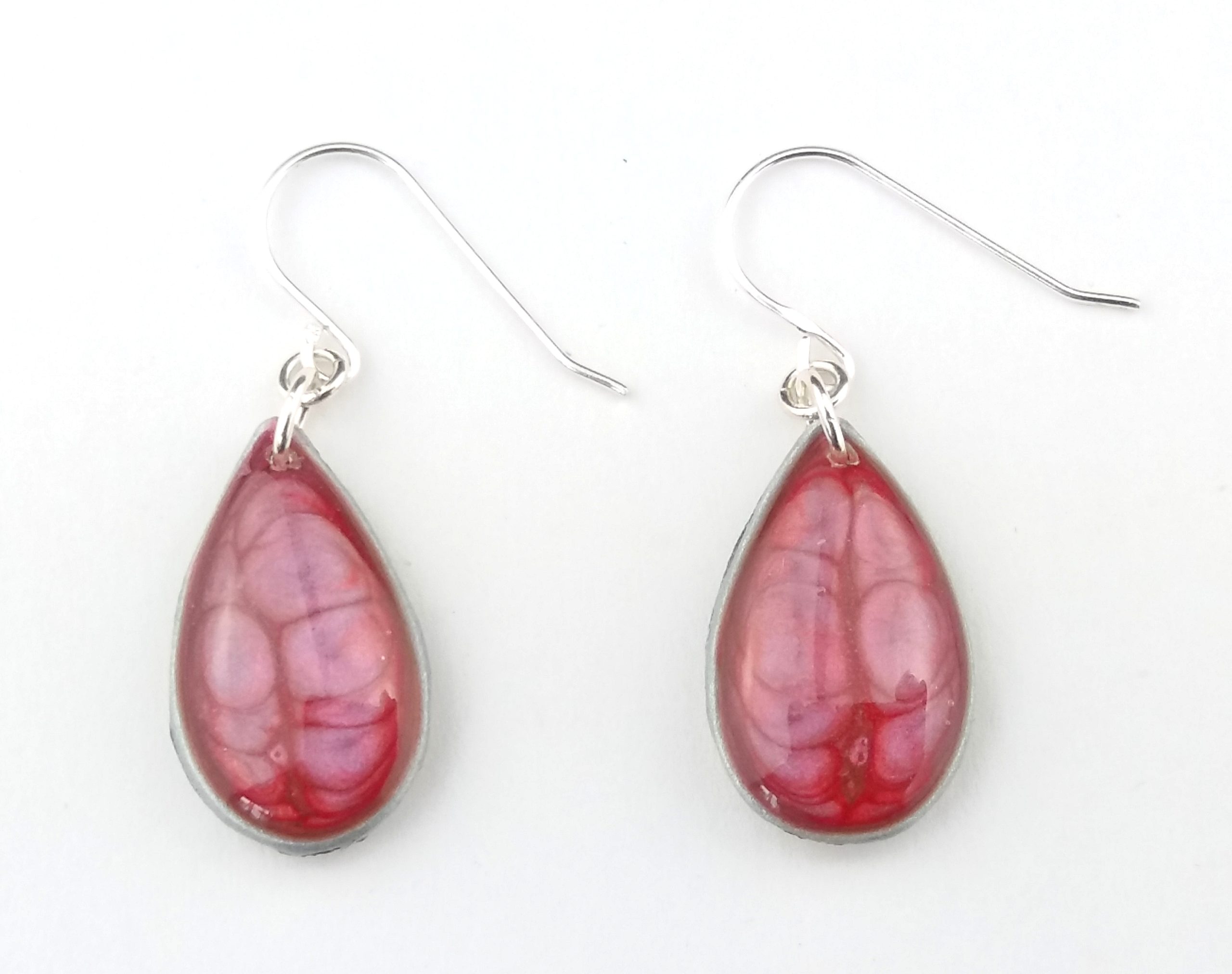 Boucles en argent 925 petite Goutte peintures émaux rouge rose