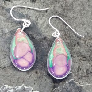 Boucles en argent 925 petite Goutte peintures émaux violet et vert d’eau