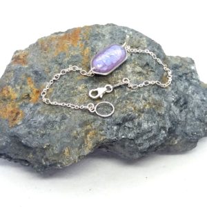 Bracelet argent petit Hexagone violet
