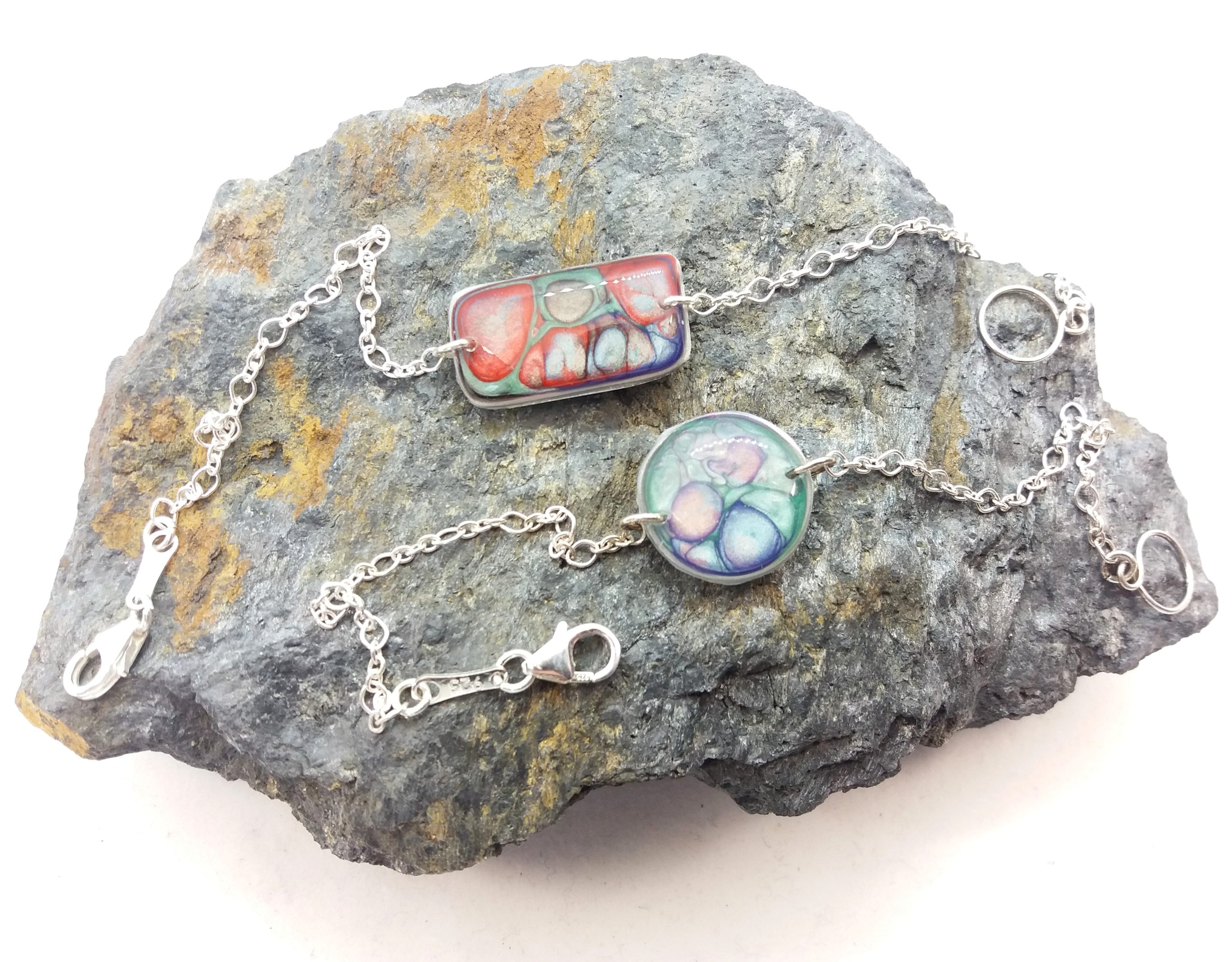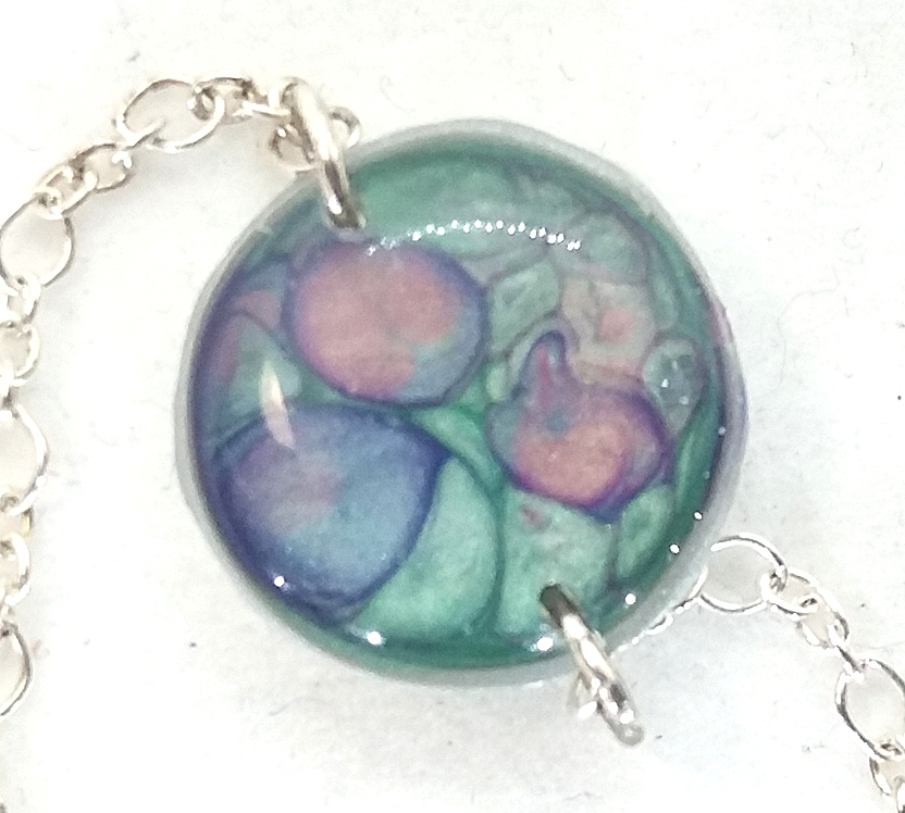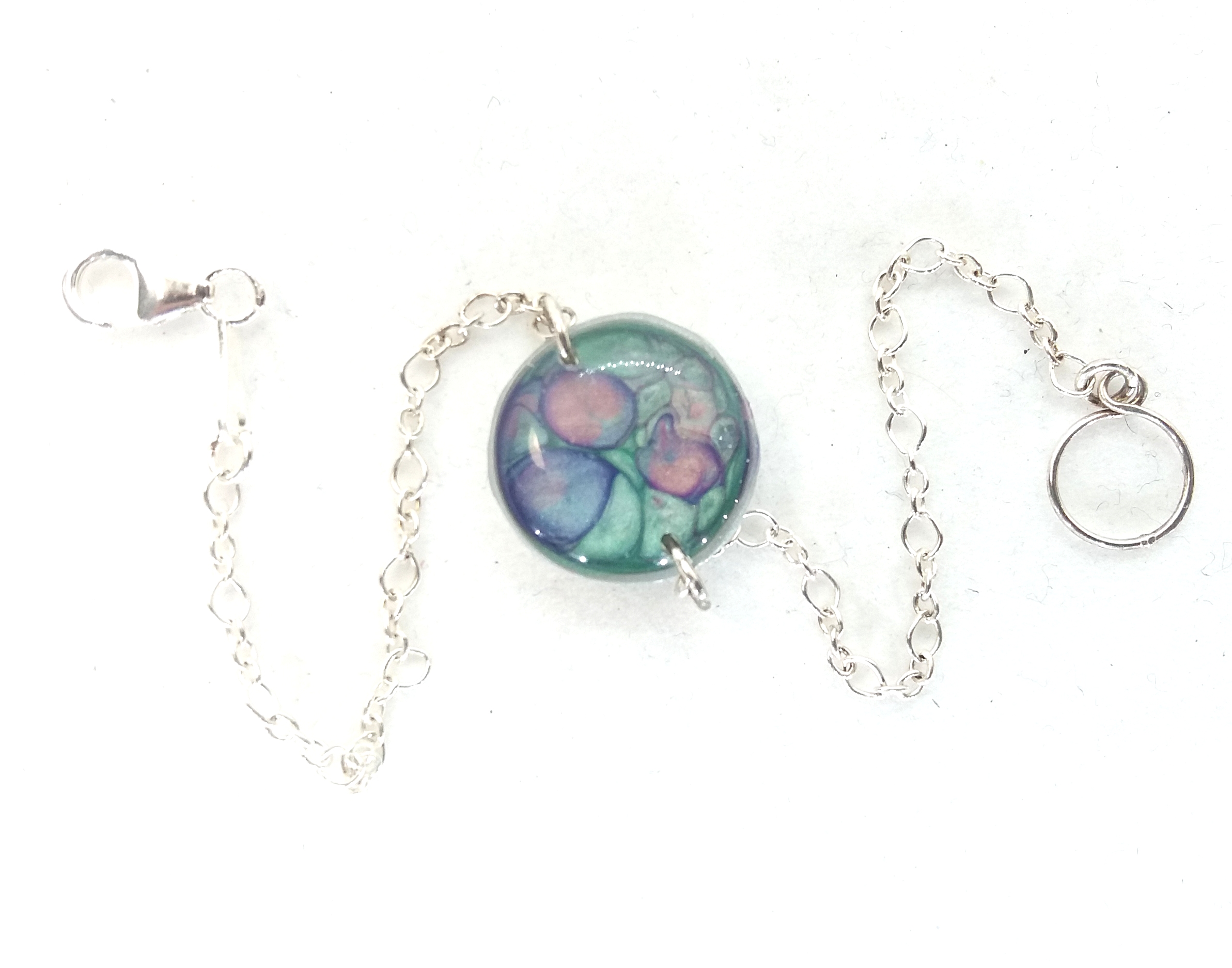 Bracelet en argent petit Rond peintures émaux bleu vert et rose