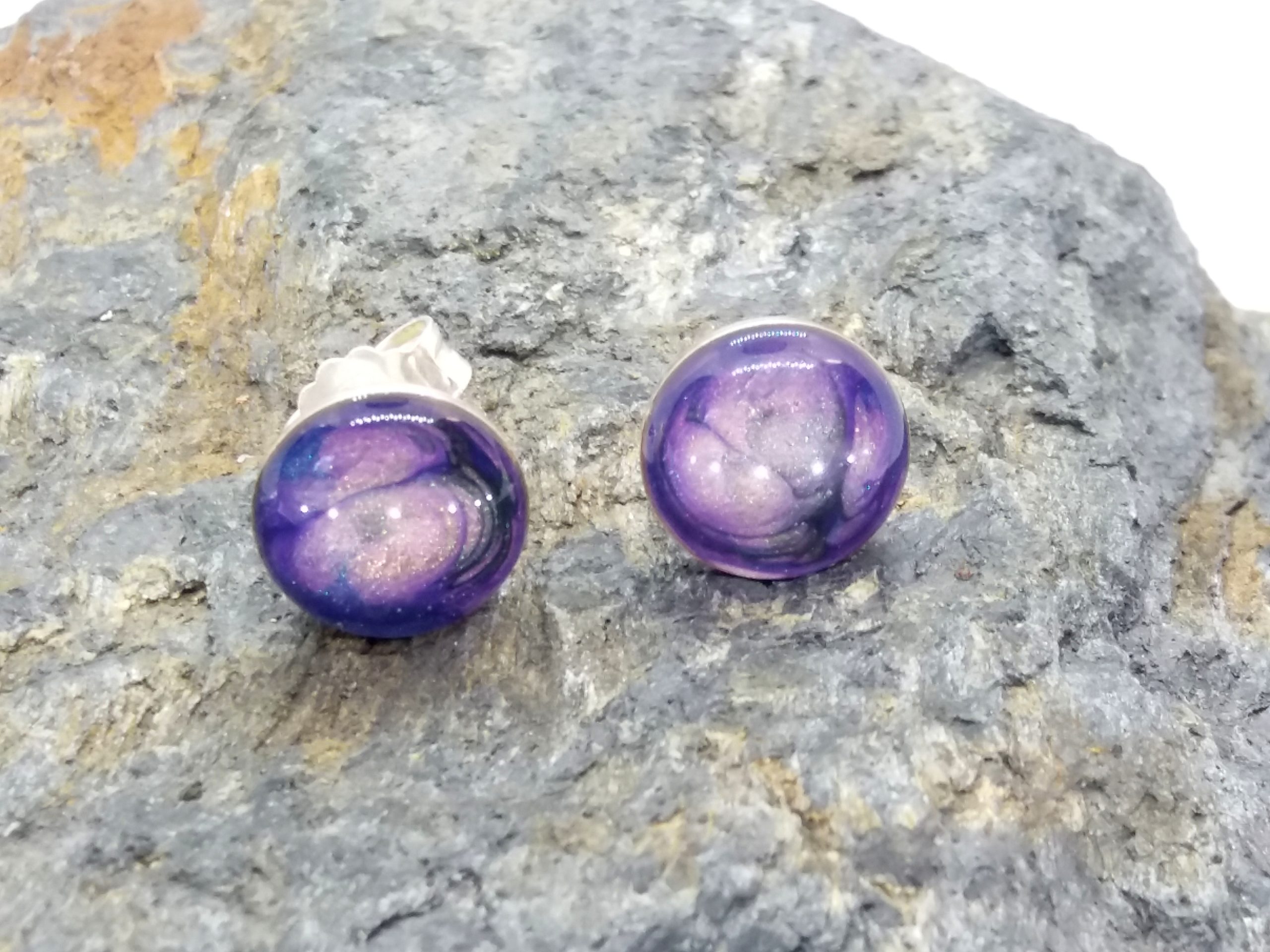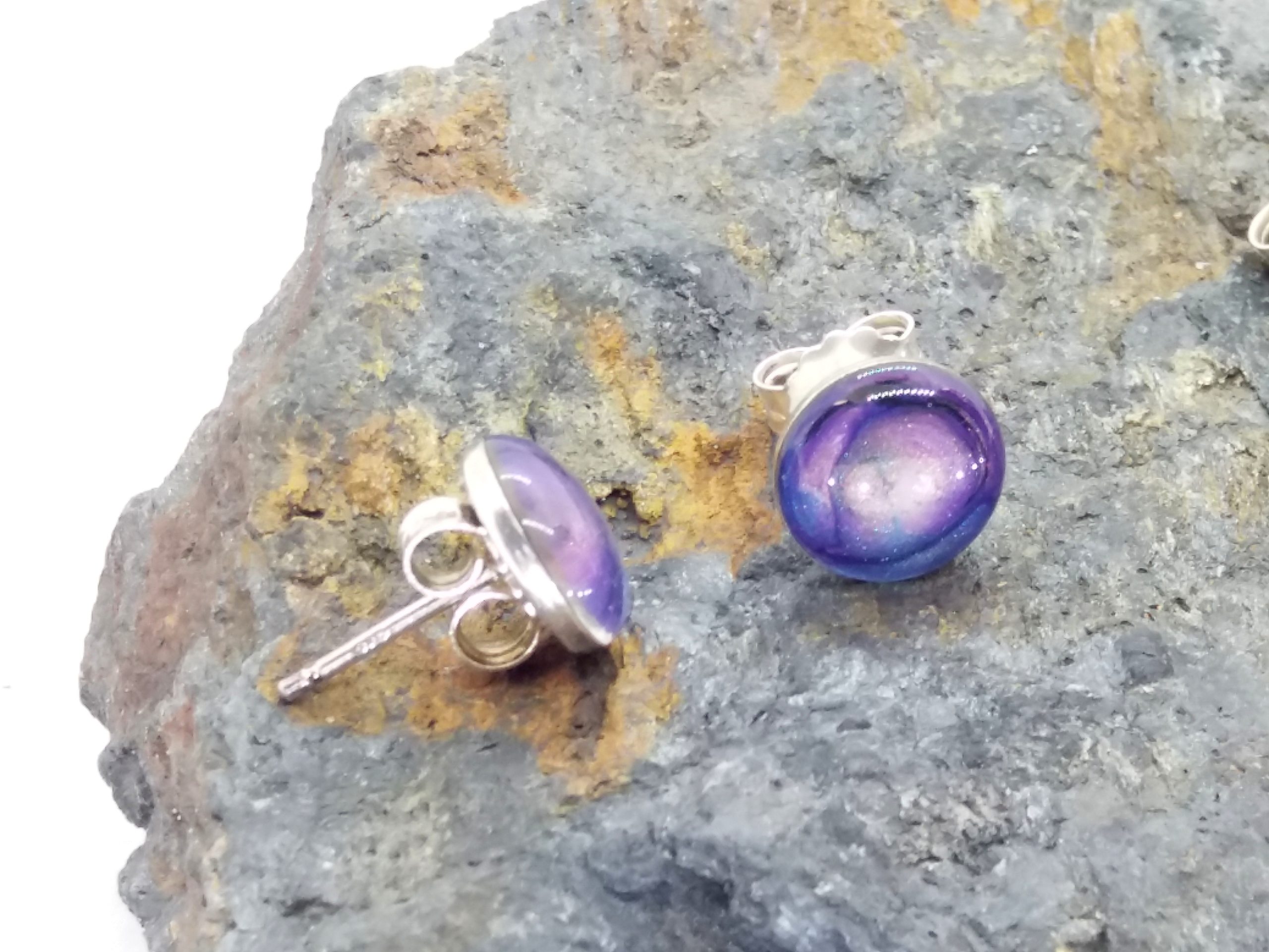 Puces en argent 925 Rond peintures émaux violet et bleu