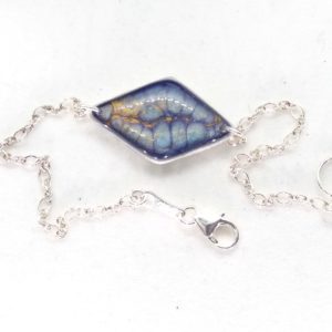 Bracelet en argent 925 Hexagone peintures émaux bleu nuit et blanc