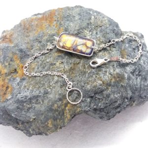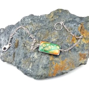 €25.00Bracelet en argent 925 petit Rectangle peintures émaux verts et orange -