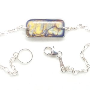 €25.00Bracelet en argent 925 petit Rectangle peintures émaux bleu vert rose et violet -