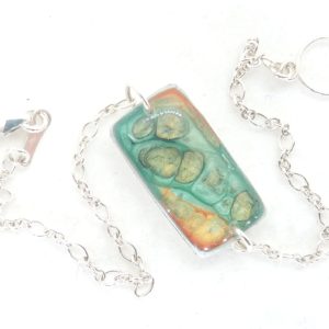 €25.00Bracelet en argent 925 petit Rectangle peintures émaux verts et orange -